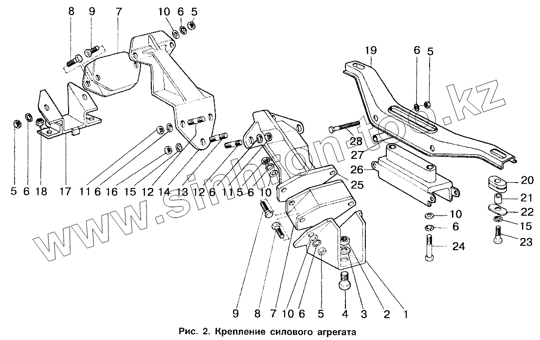 Каталог запасных частей к технике: ИЖ 2717. Крепление силового агрегата