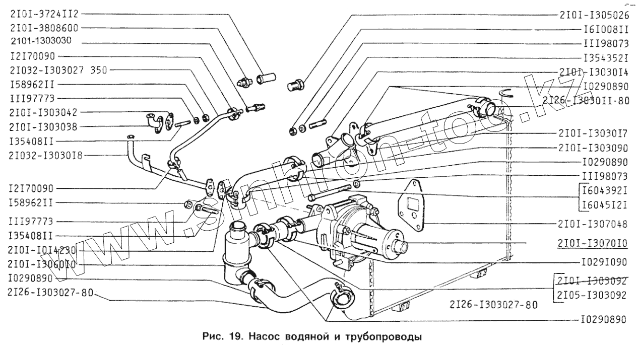 Каталог запасных частей к технике: ИЖ 2717. Насос водяной и трубопроводы