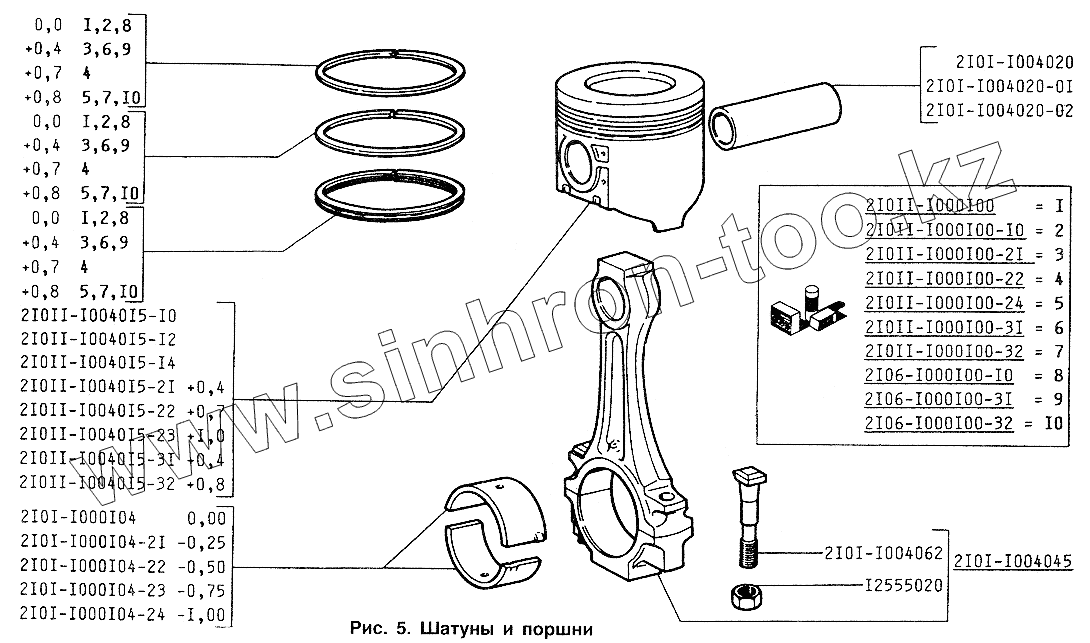 Каталог запасных частей к технике: ИЖ 2717. Шатуны и поршни