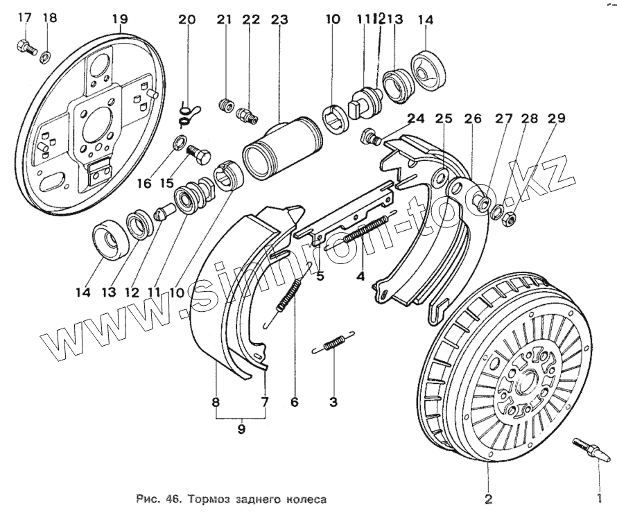 Каталог запасных частей к технике: ИЖ 2717. Тормоз заднего колеса
