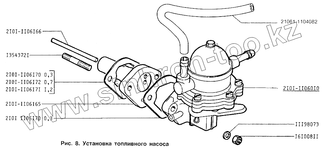 Каталог запасных частей к технике: ИЖ 2717. Установка топливного насоса
