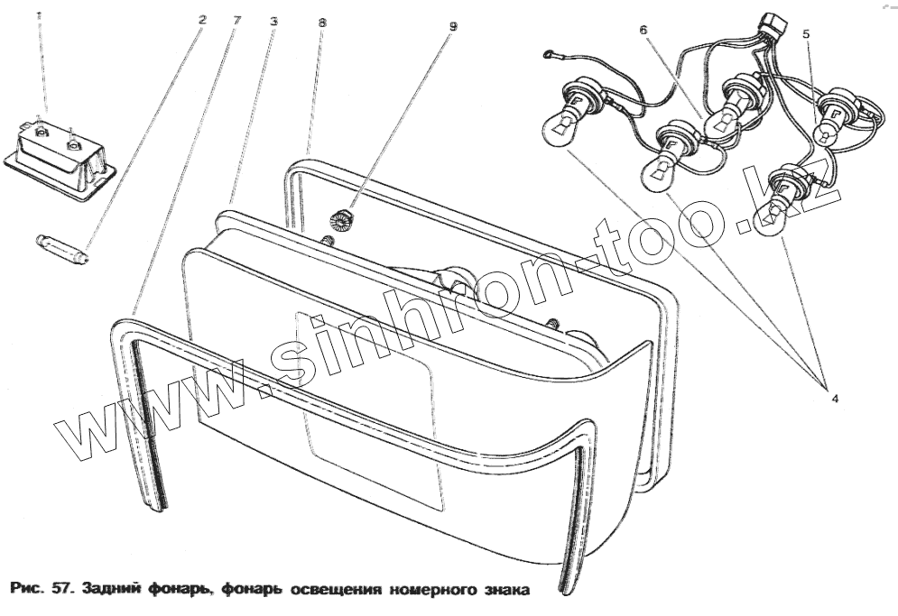 Каталог запасных частей к технике: ИЖ 2717. Задний фонарь, фонарь освещения номерного знака