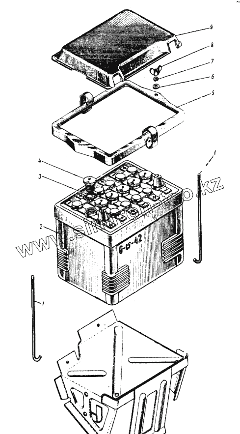 Аккумуляторная батарея 6СТ-42-ЭМ-3 (без электролита, сухозаряженная) в сборе