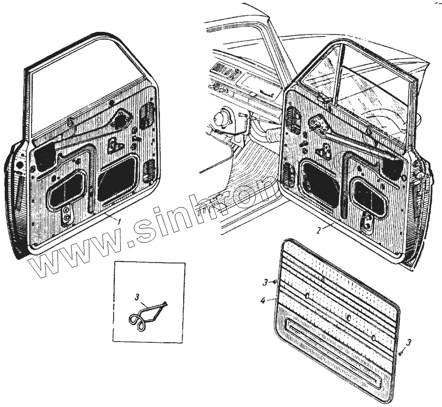 Каталог запасных частей к технике: ИЖ 412. Передняя дверь кузова модели 412