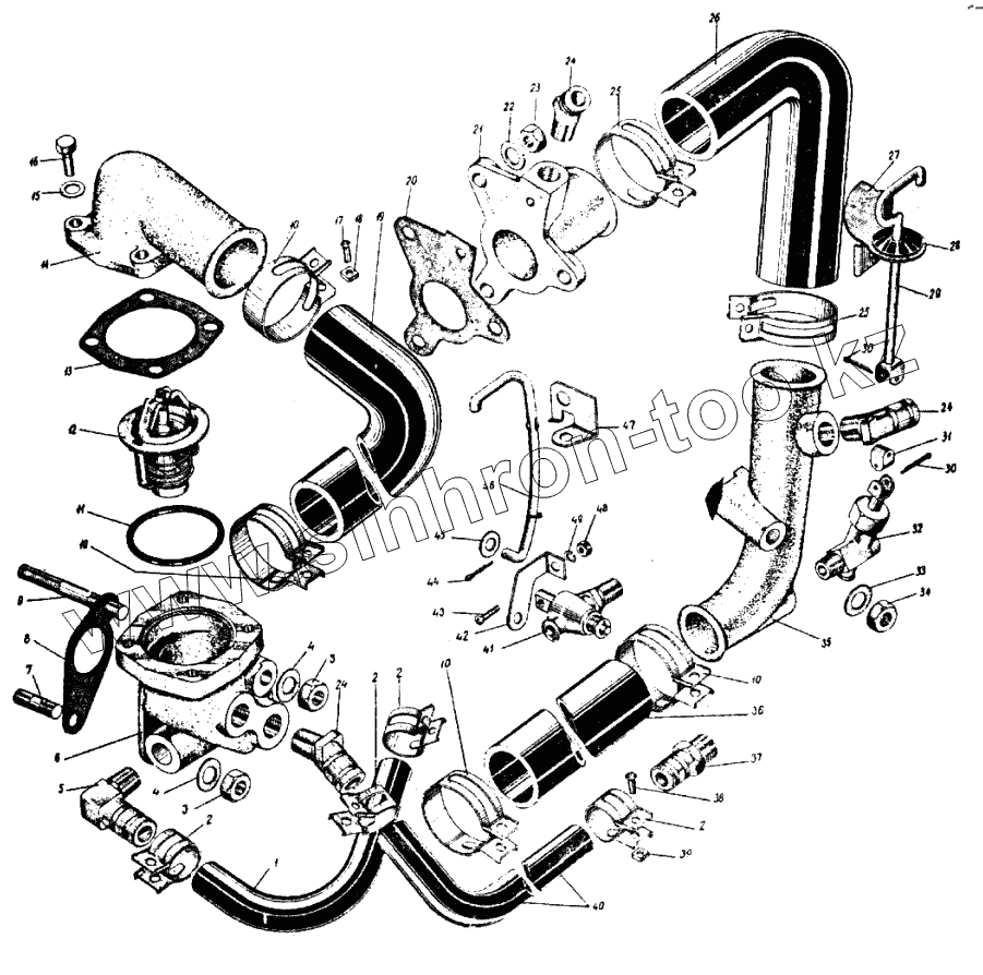 Каталог запасных частей к технике: ИЖ 412. Трубопроводы, шланги и термостат системы охлаждения