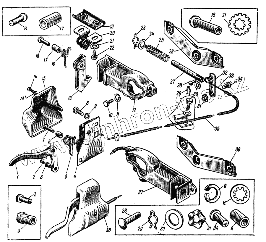 Каталог запасных частей к технике: ИЖ 412. Замок, ручка и привод замка багажника