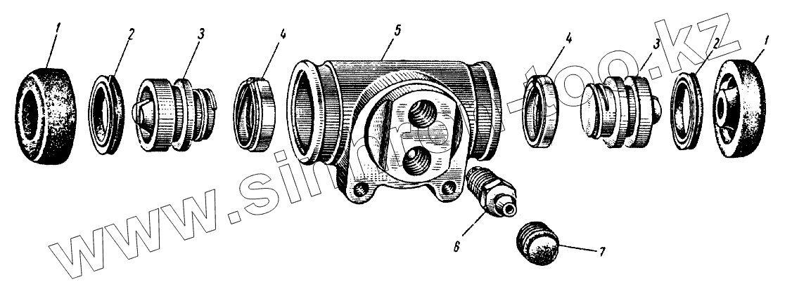 Каталог запасных частей к технике: ИЖ 427. Колесный цилиндр гидропривода тормоза заднего колеса