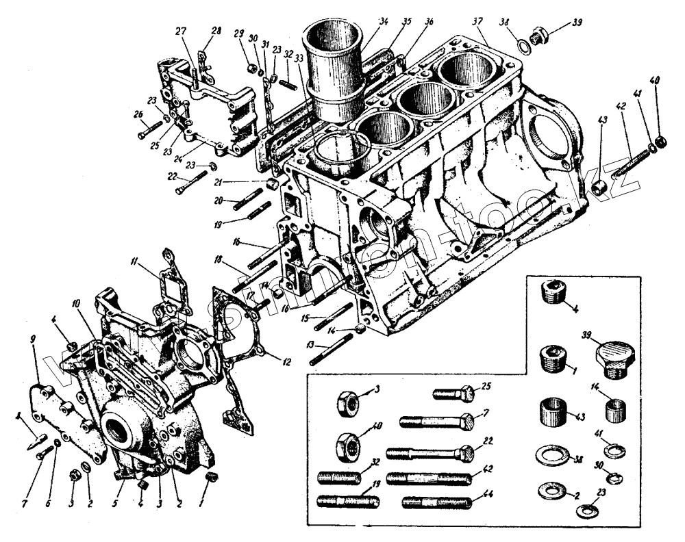 Каталог запасных частей к технике: ИЖ 434. Блок и гильзы цилиндров двигателя