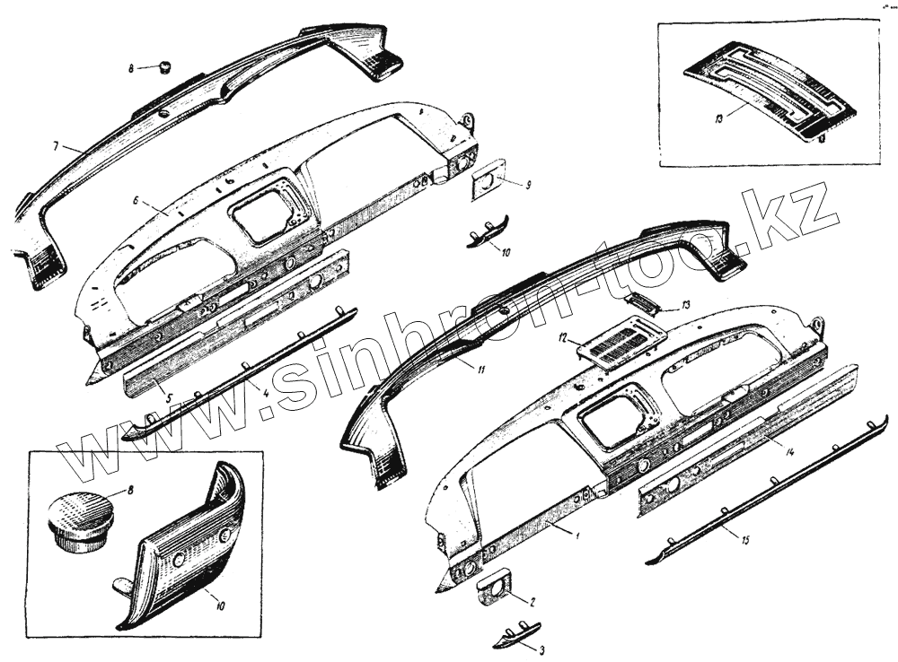 Щиток приборов и детали его крепления к панели