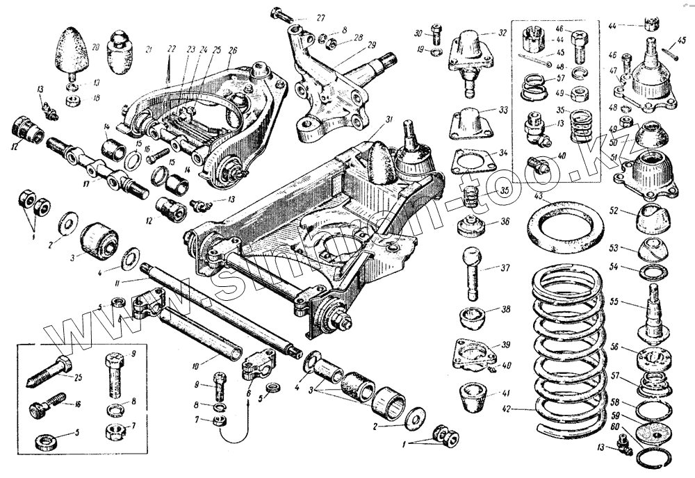 Каталог запасных частей к технике: ИЖ 434. Пружина, стойка и рычаги передней подвески