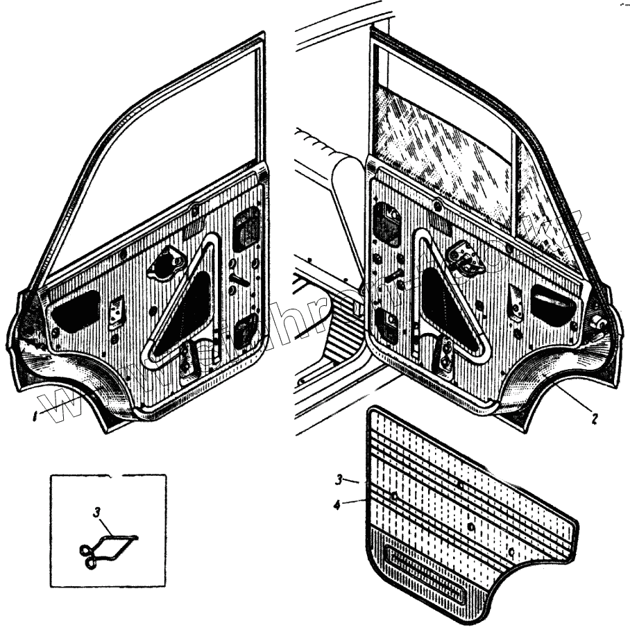 Каталог запасных частей к технике: ИЖ 434. Задняя дверь кузова модели 412