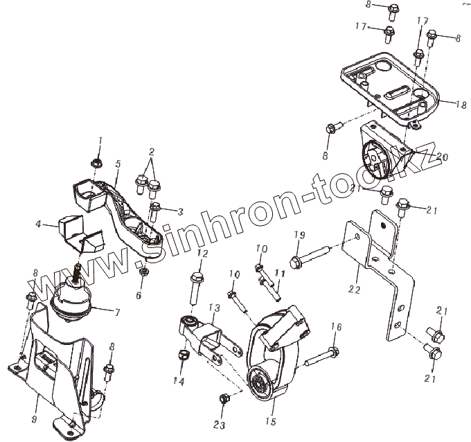 Каталог запасных частей к технике: Lifan LF-7130A1 Breez 1,3. Engine suspension