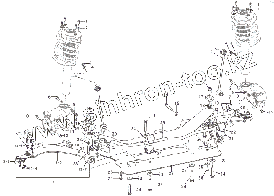 Каталог запасных частей к технике: Lifan LF-7130A1 Breez 1,3. Front suspension