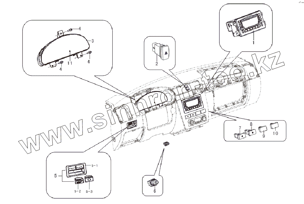 Каталог запасных частей к технике: Lifan LF-7131A Breez 1,3. Electrical equipment in dashboard
