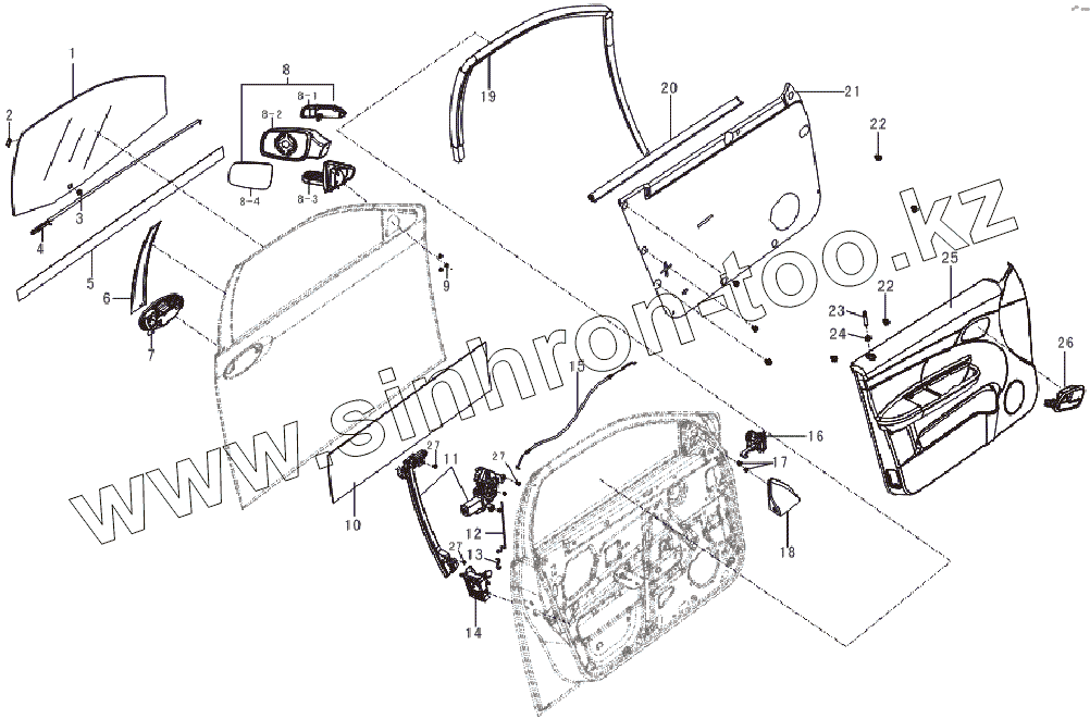 Каталог запасных частей к технике: Lifan LF-7131A Breez 1,3. Front door attachment