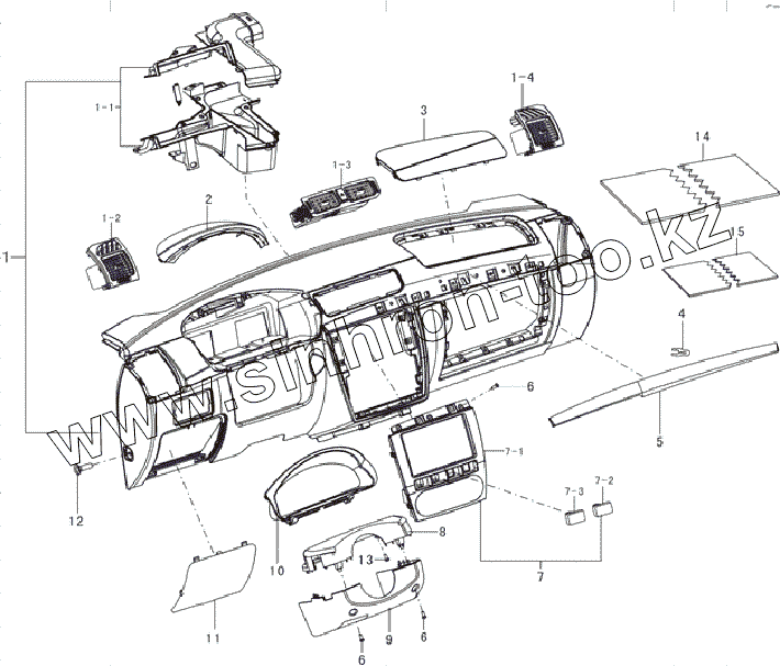 Каталог запасных частей к технике: Lifan LF-7160L1 Breez 1,6. Dashboard trims