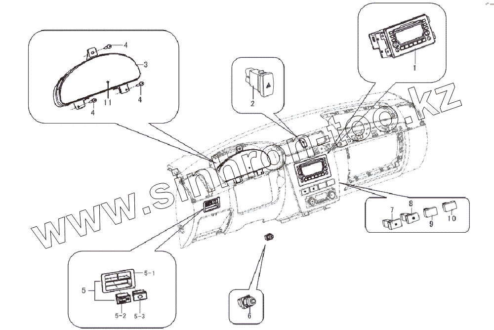 Каталог запасных частей к технике: Lifan LF-7160L1 Breez 1,6. Electrical equipment in dashboard