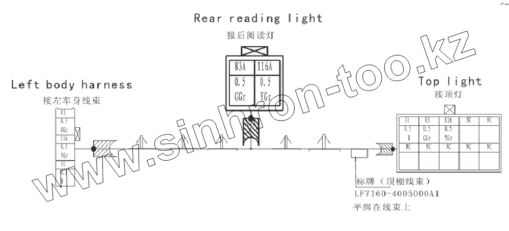 Каталог запасных частей к технике: Lifan LF-7160L1 Breez 1,6. Headlining harness