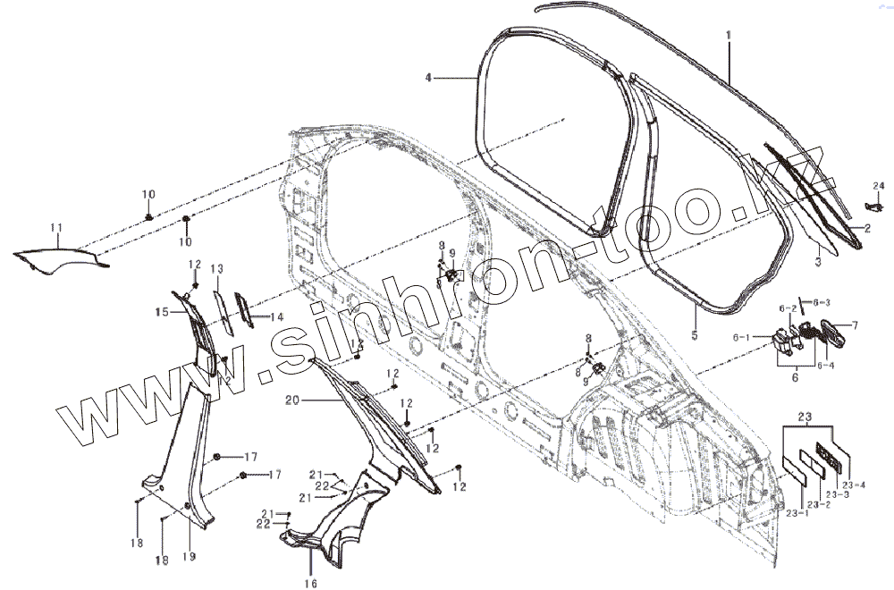 | 24 | L6107213 | Weather strip clip, roof right side |