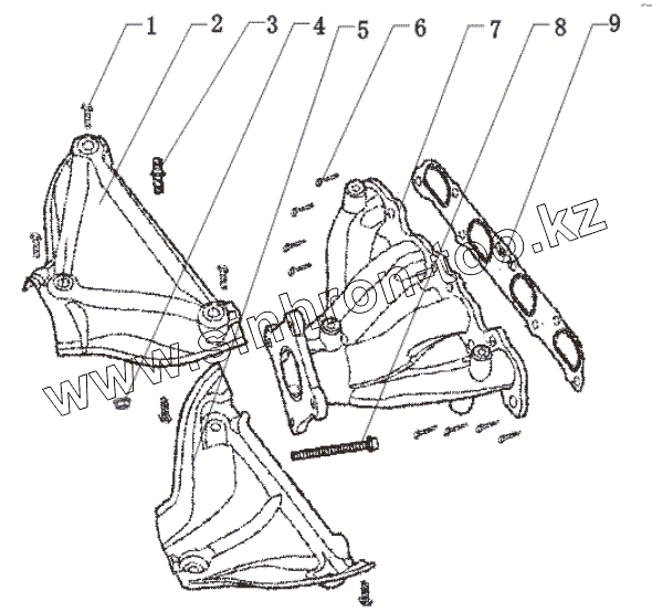 Каталог запасных частей к технике: Lifan LF-7162 Solano. Exhaust Manifold