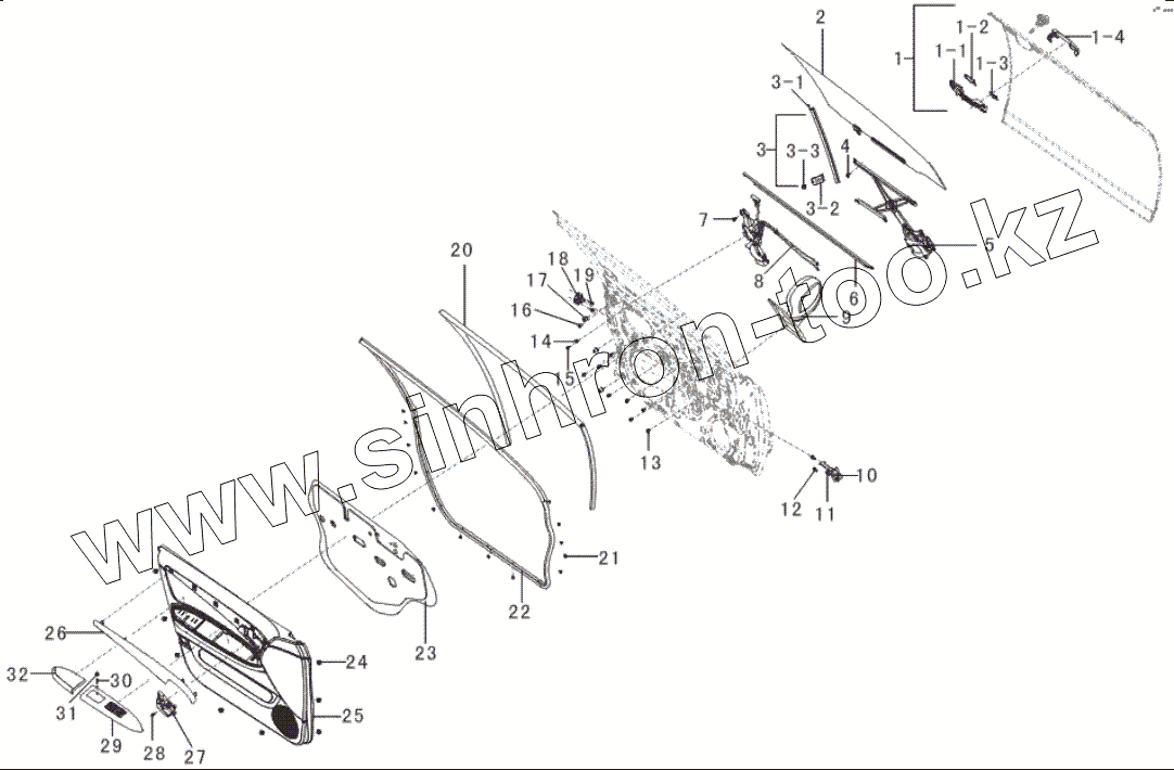 Каталог запасных частей к технике: Lifan LF-7162 Solano. Front left door