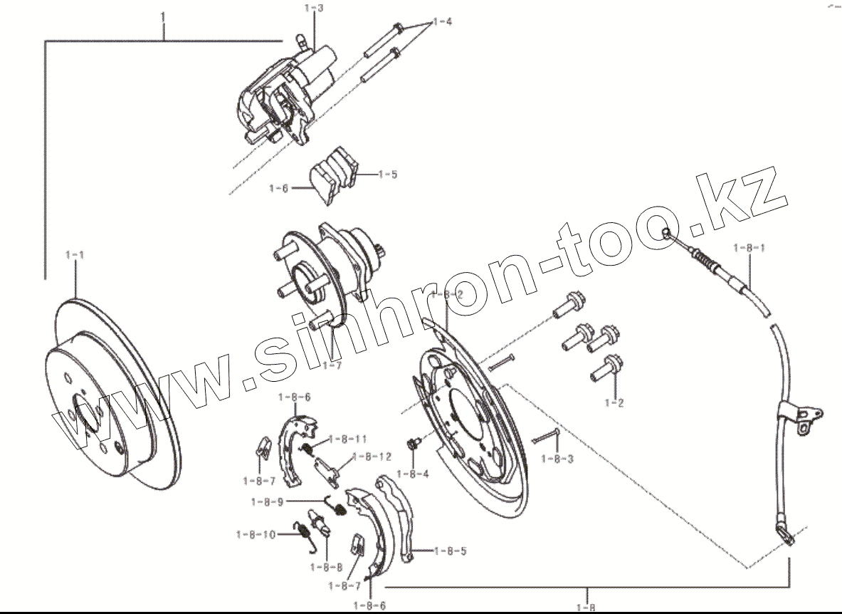 | 1-8 | B3502900 | Right rear brake bottom assy | |