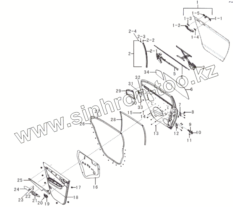 Каталог запасных частей к технике: Lifan LF-7162 Solano. Rear left door