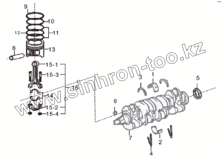 Каталог запасных частей к технике: Lifan LF-7162C Solano. Crankshaft and piston rod