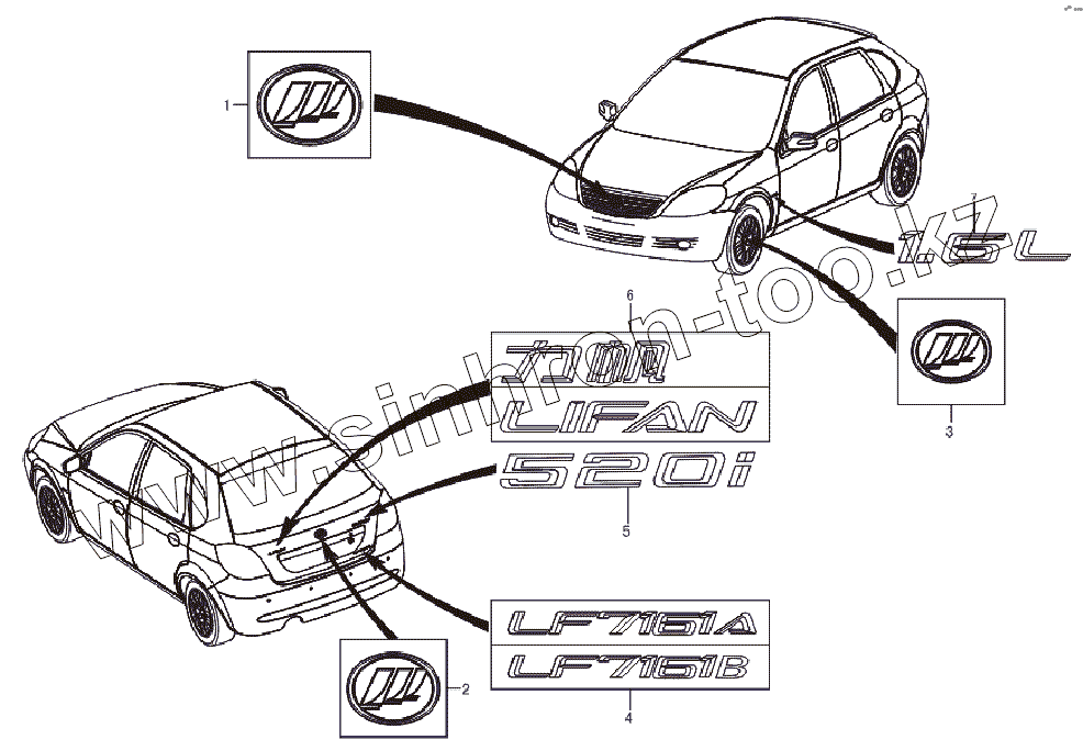 Каталог запасных частей к технике: Lifan LF-LF7161A Breez 1,6H. Logo emblem