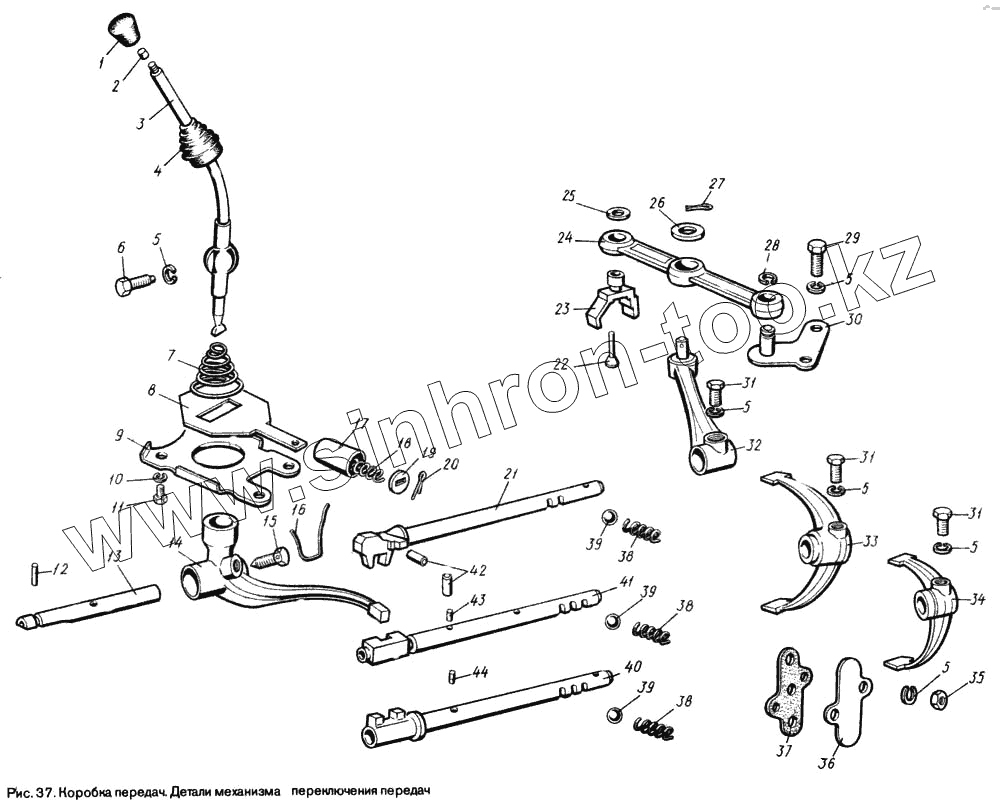 Каталог запасных частей к технике: ЛуАЗ 969М. Детали механизма переключения передач