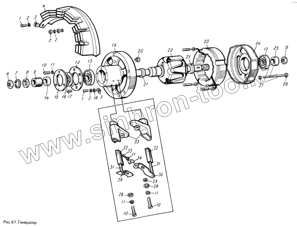 | 23 | Г502А-3701200 | Статор с обмотками в сборе | |