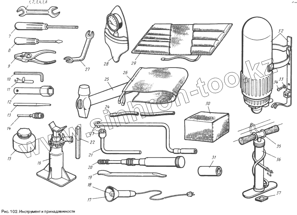Каталог запасных частей к технике: ЛуАЗ 969М. Инструмент и принадлежности