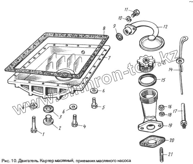 Каталог запасных частей к технике: ЛуАЗ 969М. Картер масляный, приемник масляного насоса