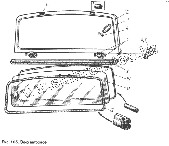 Каталог запасных частей к технике: ЛуАЗ 969М. Окно ветровое