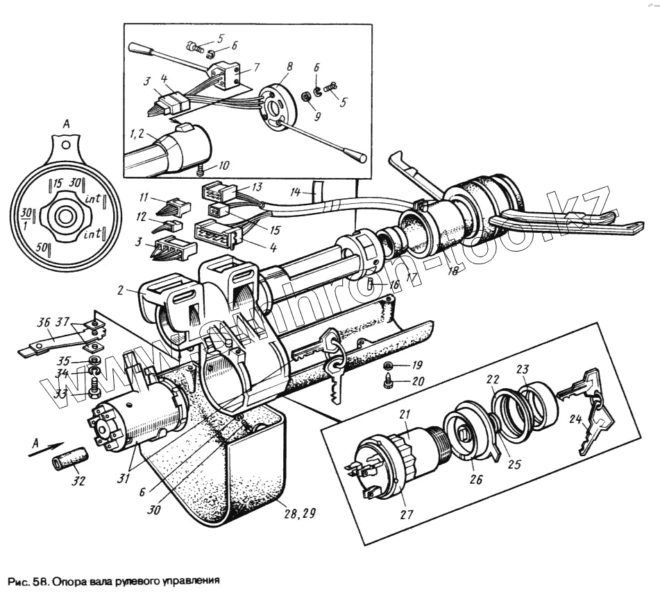 | 31 | 2101-3704000-10 | Замок зажигания с противоугонным устройством и ключами (до 04.84 г. контактное устройство данного замка зажигания изготавливалось с восемью штекерами) | |