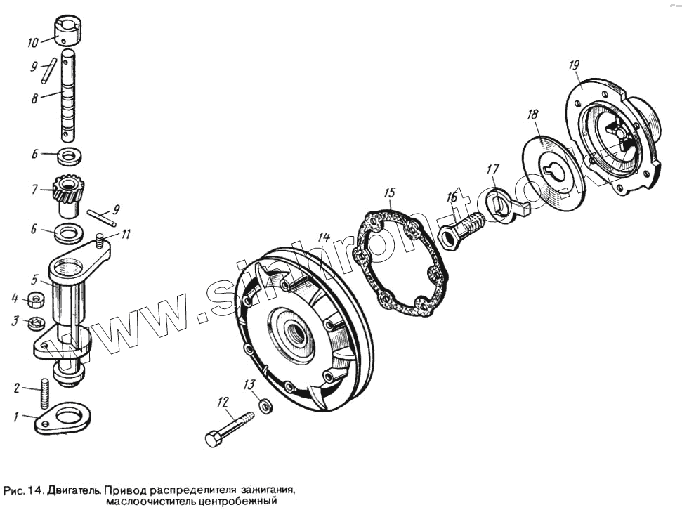 Каталог запасных частей к технике: ЛуАЗ 969М. Привод распределителя зажигания, маслоочиститель центробежный
