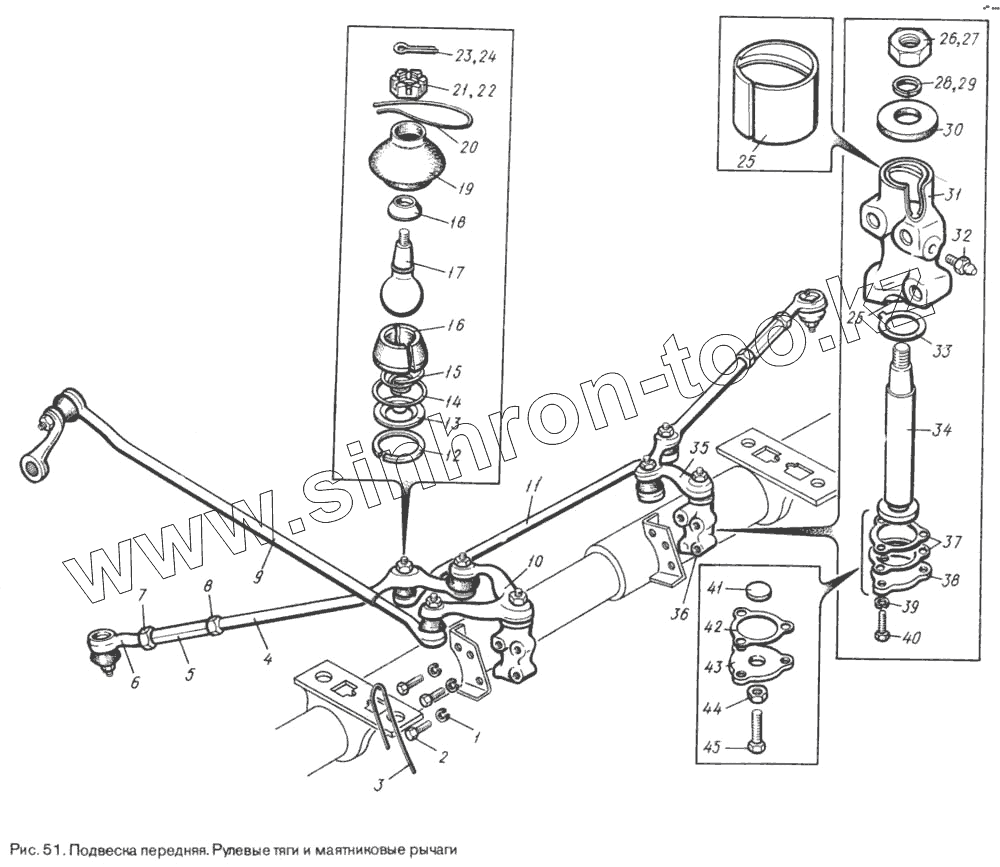 Каталог запасных частей к технике: ЛуАЗ 969М. Рулевые тяги и маятниковые рычаги