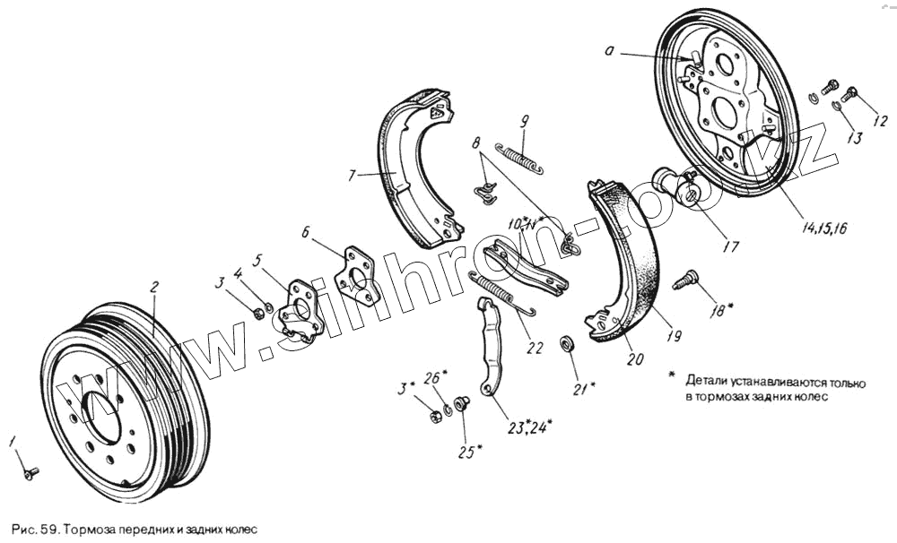 Каталог запасных частей к технике: ЛуАЗ 969М. Тормоза передних и задних колес