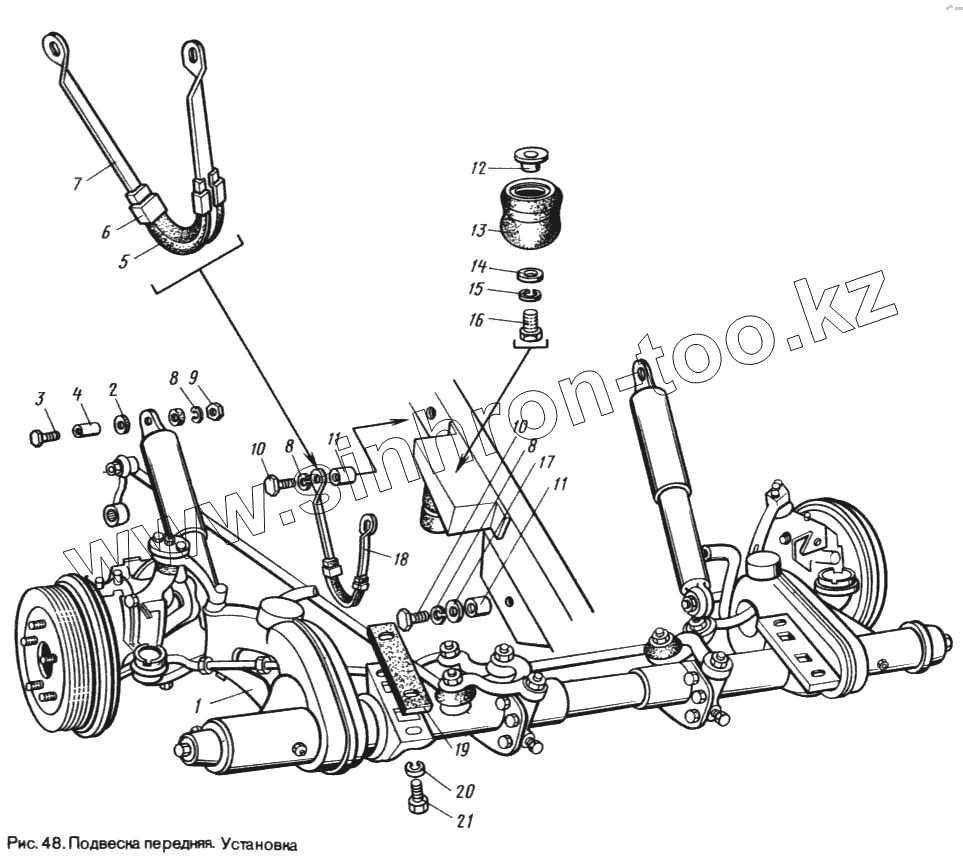 Каталог запасных частей к технике: ЛуАЗ 969М. Установка передней подвески