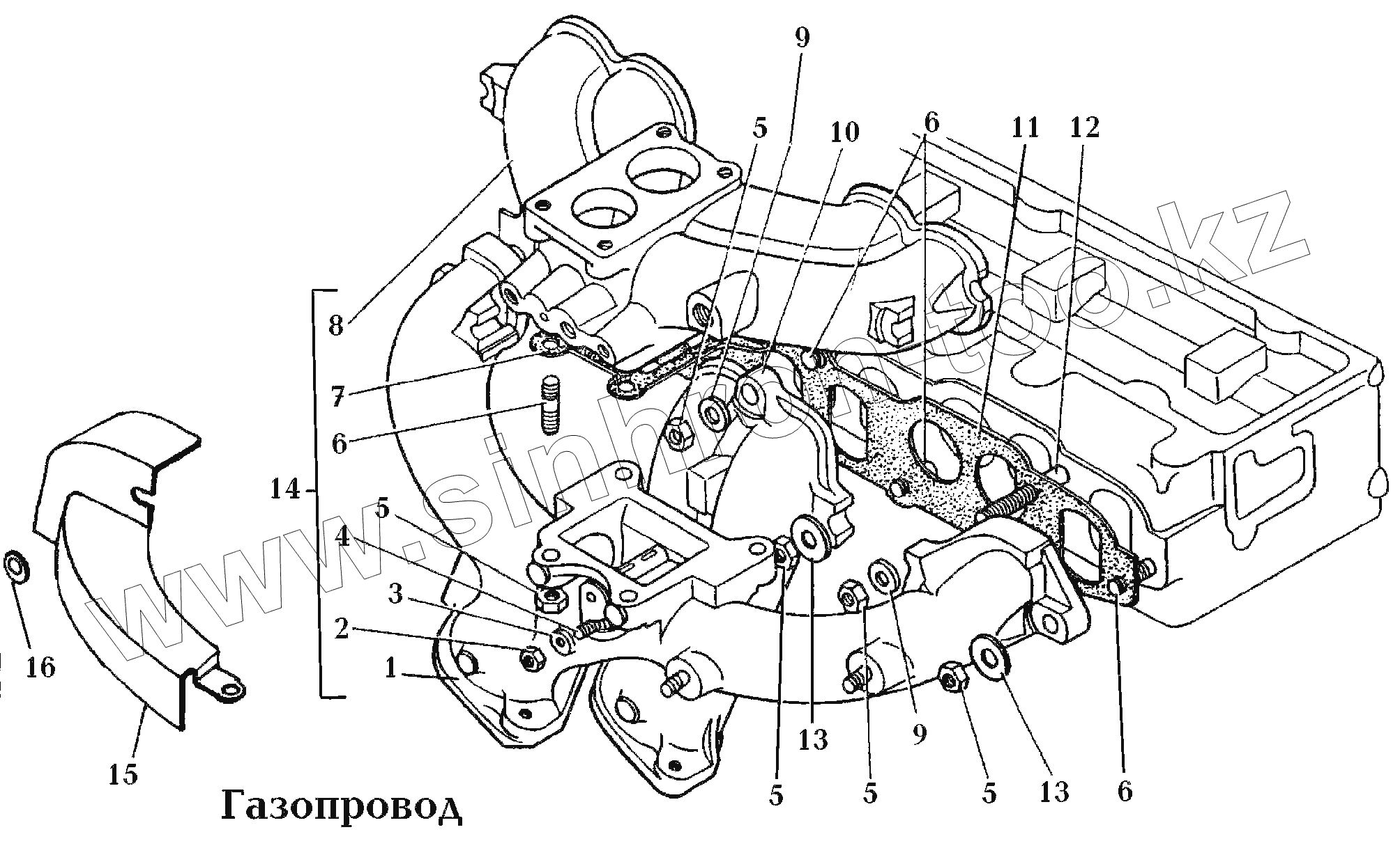 Каталог запасных частей к технике: РАФ-22038-2. 100. Двигатель\Газопровод