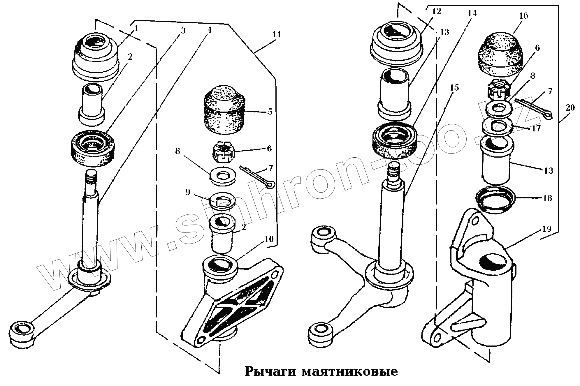 Каталог запасных частей к технике: РАФ-22038-2. 341. Тяги рулевые\Рычаги маятниковые