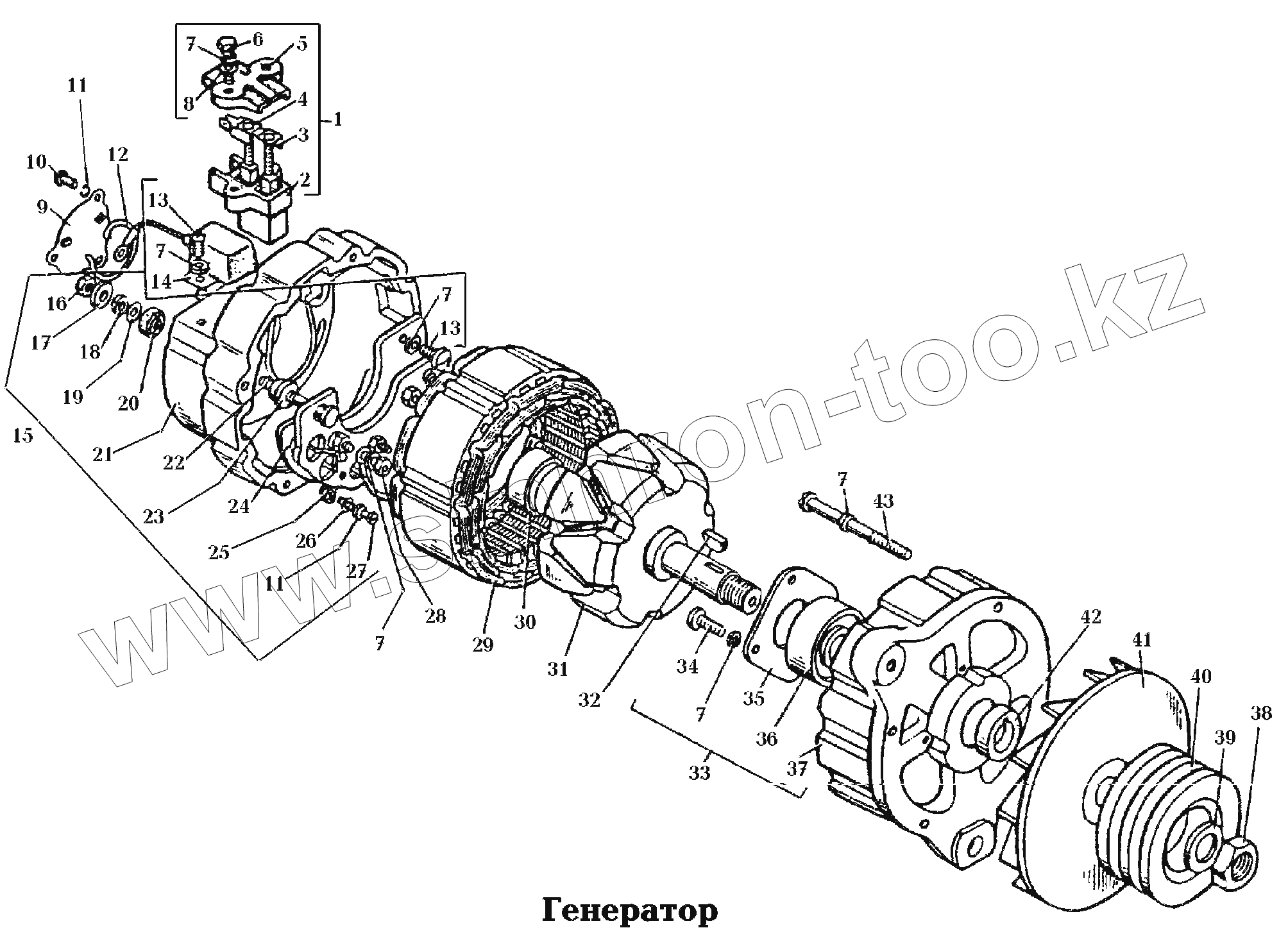 Каталог запасных частей к технике: РАФ-22038-2. 370. Электрооборудование\Генератор