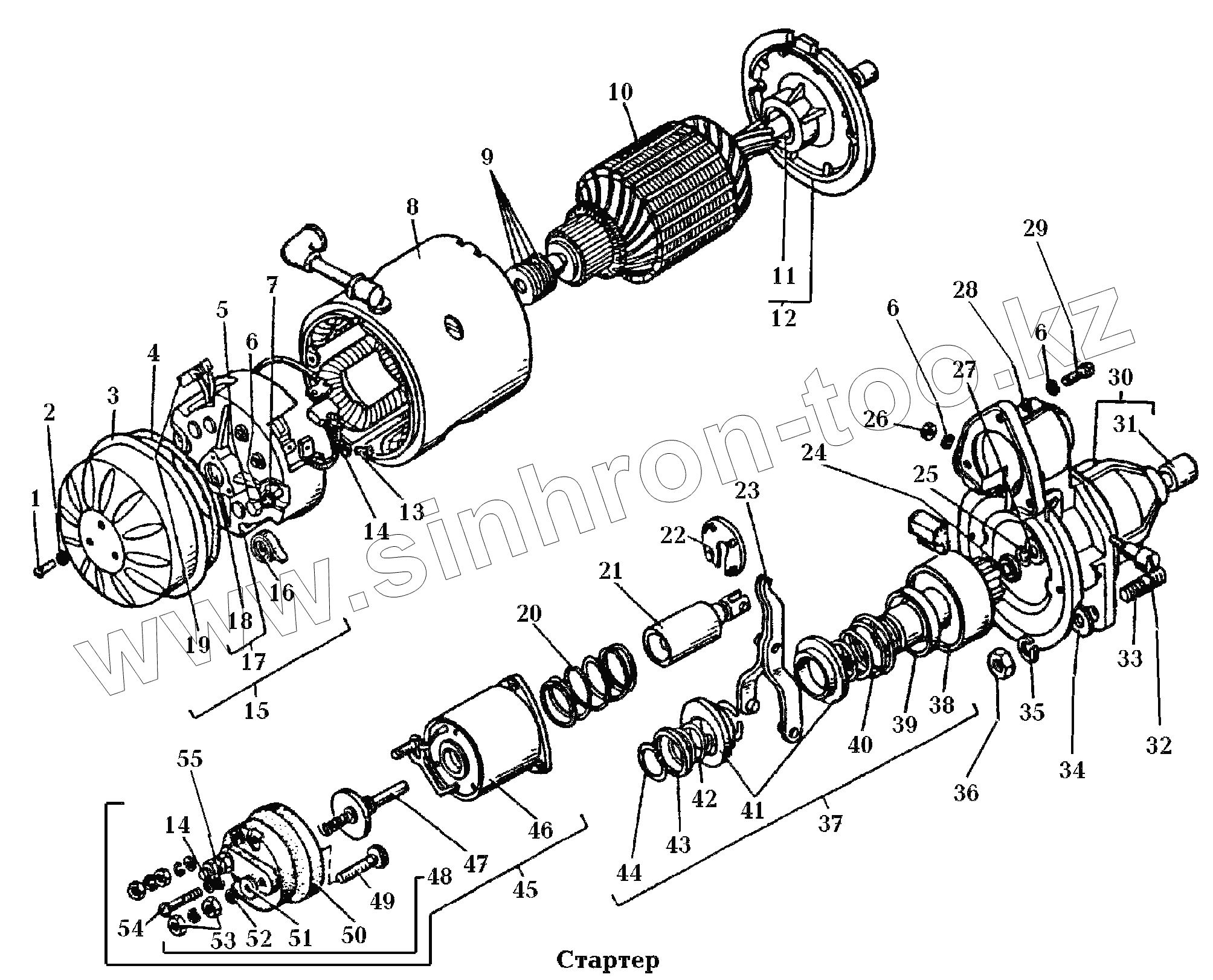 Каталог запасных частей к технике: РАФ-22038-2. 370. Электрооборудование\Стартер