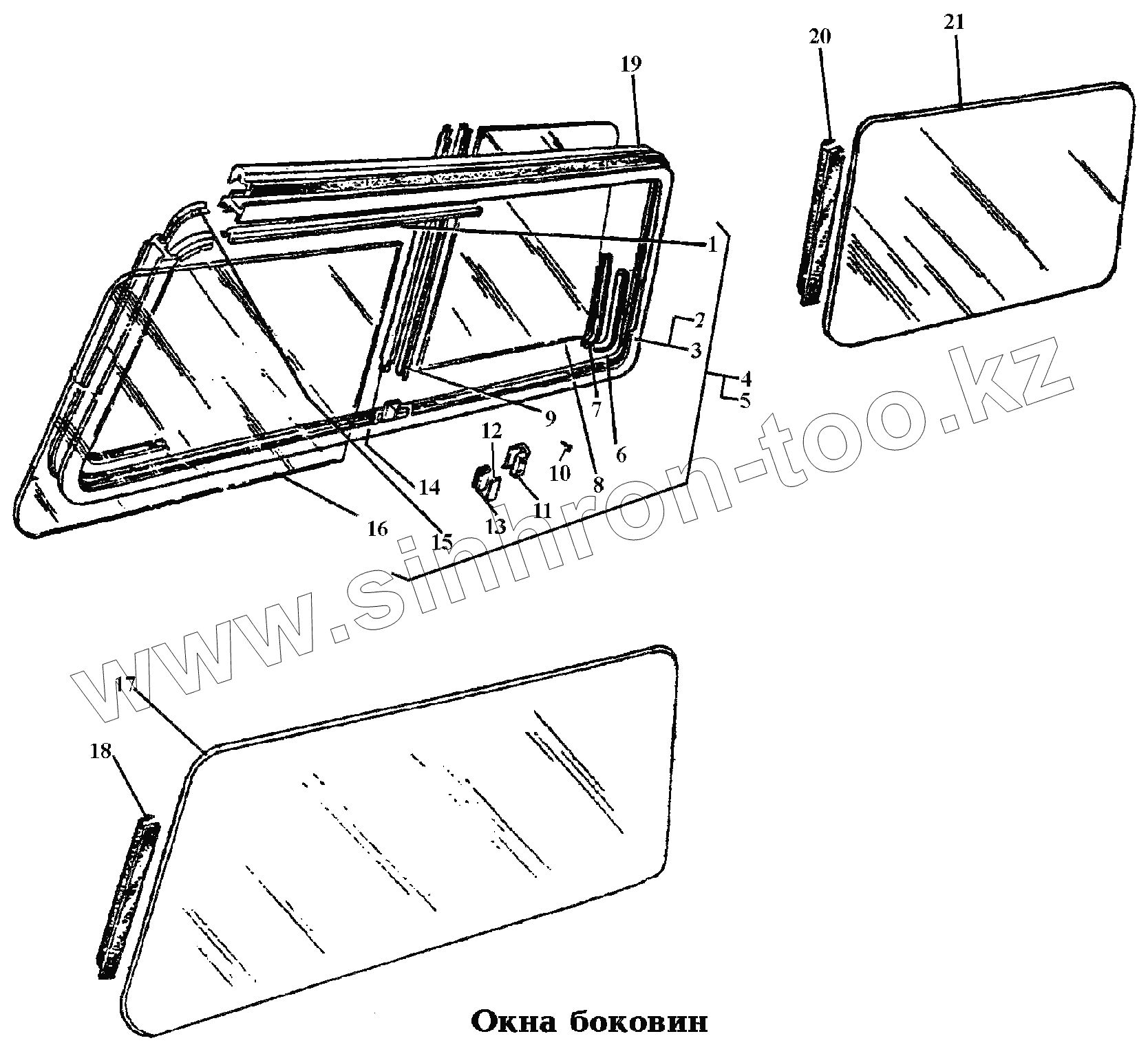 Каталог запасных частей к технике: РАФ-22038-2. 500. Кузов\Окна боковин