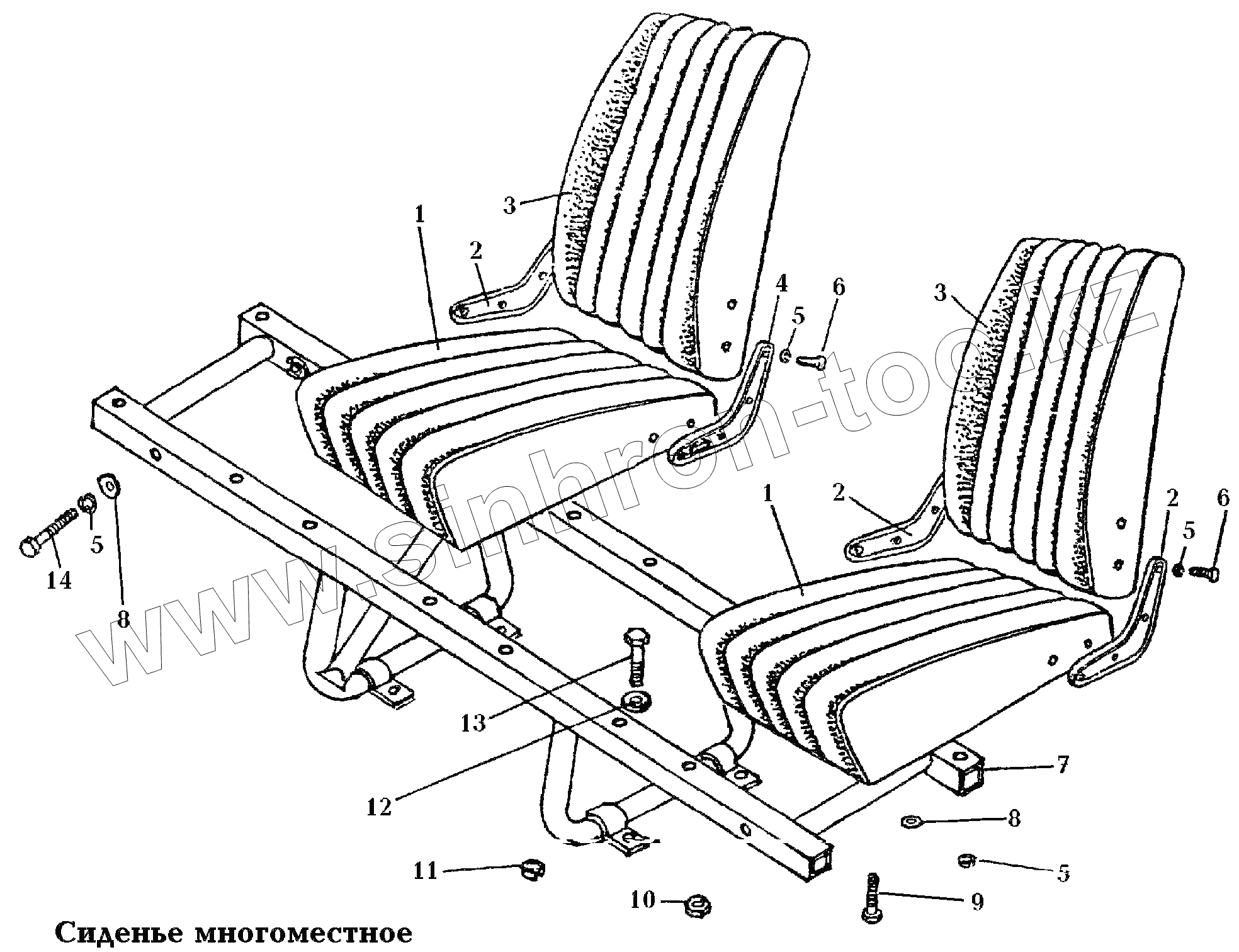Каталог запасных частей к технике: РАФ-22038-2. 680. Сиденья\Сиденье многоместное