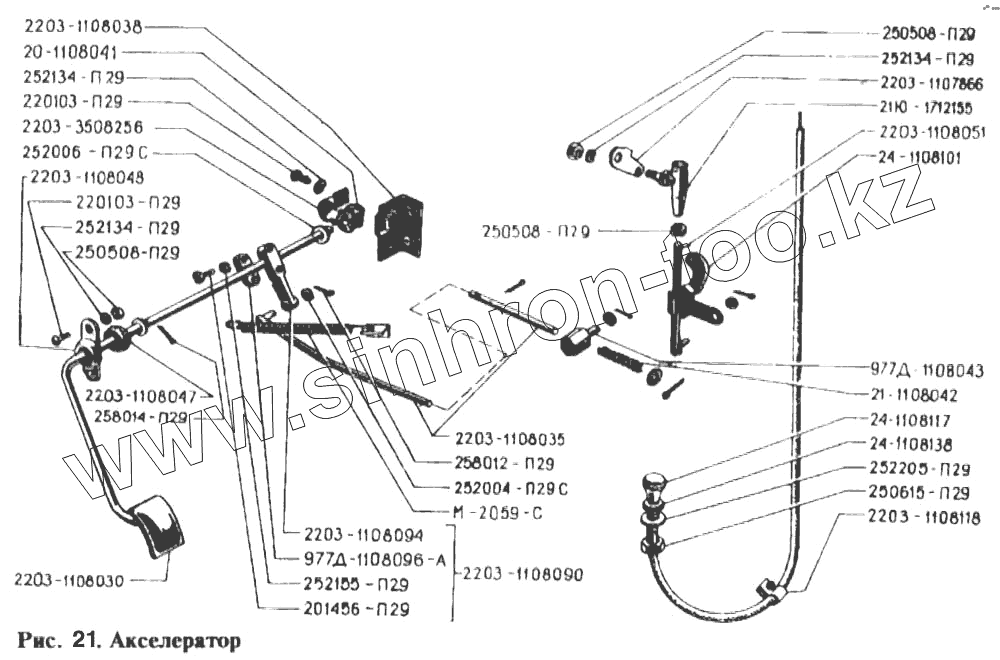 Каталог запасных частей к технике: РАФ-2203. Акселератор