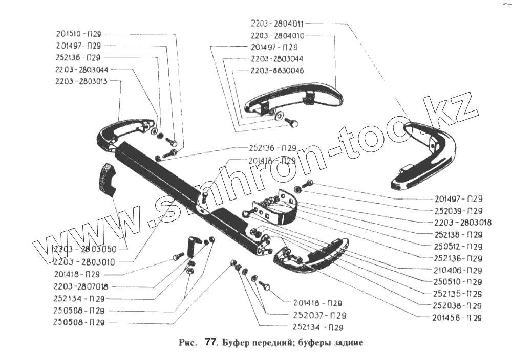 Каталог запасных частей к технике: РАФ-2203. Буфер передний, буферы задние
