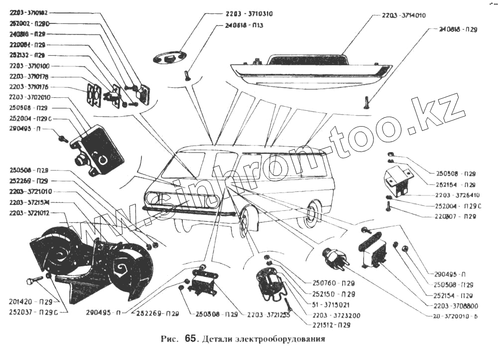 Каталог запасных частей к технике: РАФ-2203. Детали электрооборудования