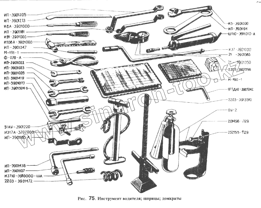 Каталог запасных частей к технике: РАФ-2203. Инструмент водителя, шприцы, домкраты