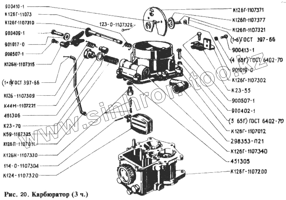 Каталог запасных частей к технике: РАФ-2203. Карбюратор (3 ч.)